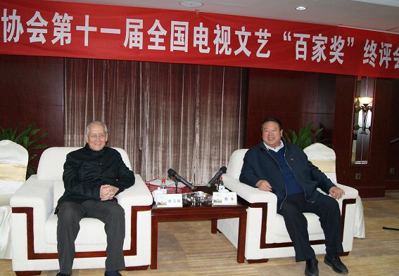 (2011年10月26日,中共河北省沧州市委书记郭华看望了评委会全体成员。并向与会评委介绍了沧州市经济科学文化的发展情况。与原国家广电部副部长、中国广播电视协会顾问刘习良及各位评委进行了亲切交谈。)